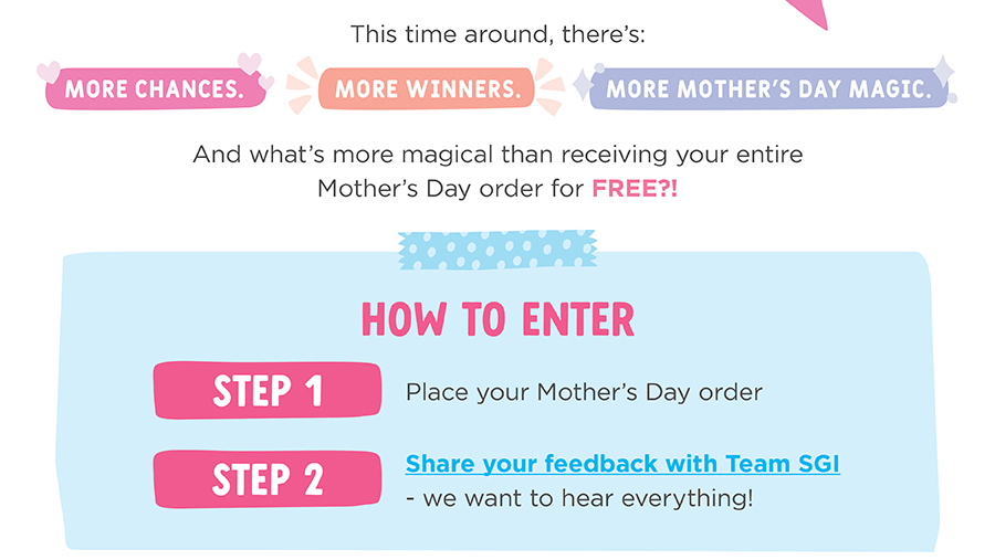 The order must already be placed during the Mother’s Day 2026 promotional period to be eligible.